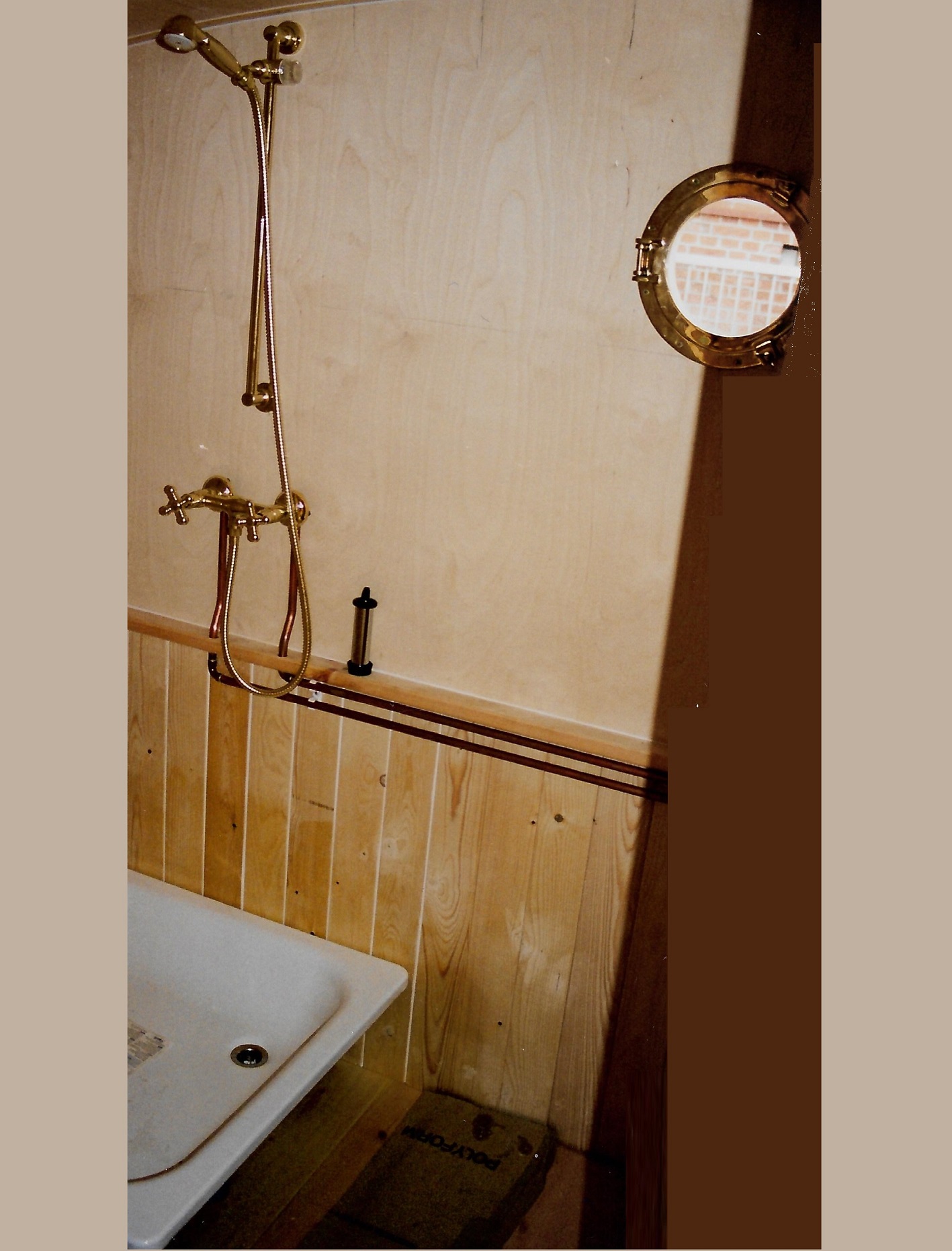 Solid oak construction, ground floor 25 m2, living room with kitchen and bathroom